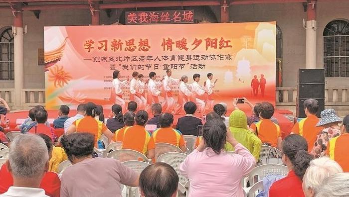 昨日下午,鲤城开元街道联合区老体协等单位,在中心市区威远楼文化广场举行“学习新思想 情暖夕阳红”——鲤城区北片区老年人体育健身运动协作赛暨“我们的节日·重阳节”活动。
