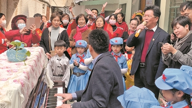 昨日下午,在泉州东湖中心幼儿园举办的学雷锋纪念日助老志愿服务活动上,小朋友们与老人们欢聚一堂,以实际行动让老人们感受浓浓的敬老情。