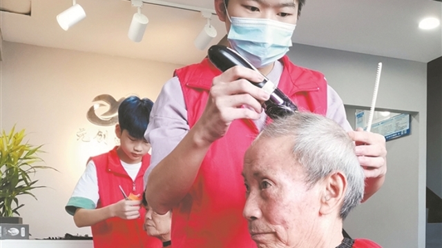 晋江:享受免费理发 老人清爽过节