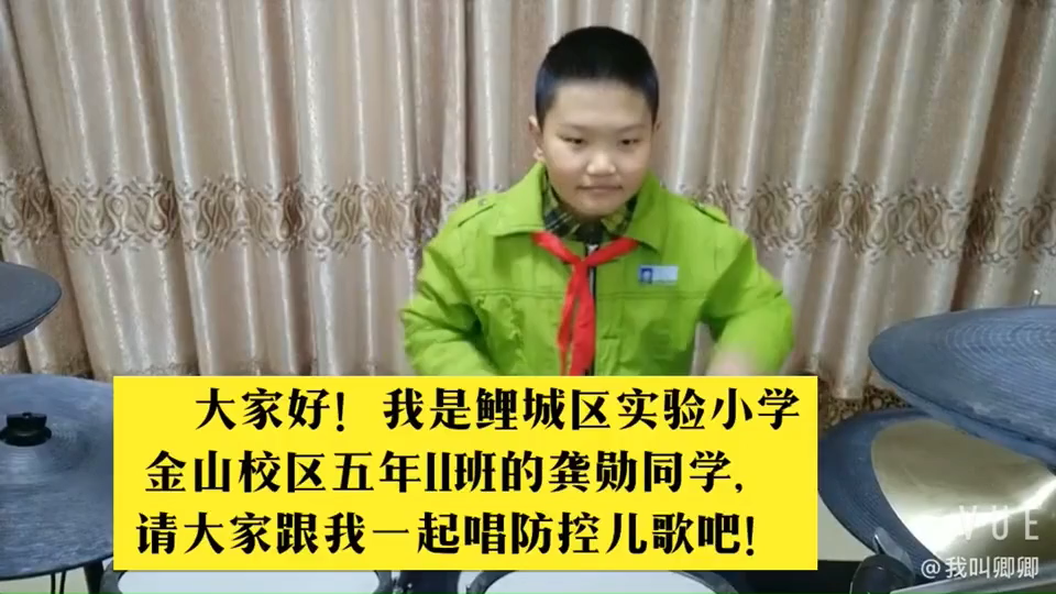 鲤城区实验小学金山校区的孩子用架子鼓表演的防控儿歌。
