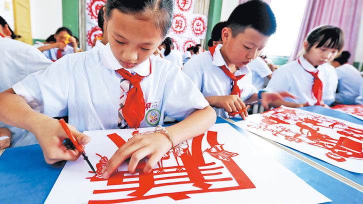 泉州市各地校园举行丰富多彩的活动,迎接“六一”国际儿童节。昨日,一场以“童心稚手传家训,剪出廉洁新风尚”为主题的别样思政教育活动在晋江市池店镇钱头小学开展。