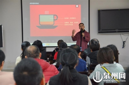 4月13日上午,2019年闽南语公益入门首期课堂在泉州晋江市图书馆二楼培训教室举行。50位成人读者齐聚一堂,在主持人王啸波老师的讲解与指导下,学讲闽南语,感触闽南语世界。