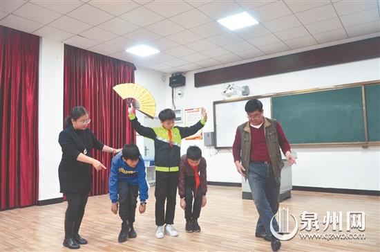 “一、二、三,走!”在泉州市新隅小学多媒体教室,时常看到一老一少两位老师为学生排练高甲戏动作。老者坐在椅子上观看,时而起身点评;青年人站在一旁,边喊节奏边教学生。配合默契的二人,是一对在艺术路上互相影响、互相接力的父女——张天鹏和张晓白。