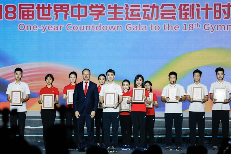 昨晚,在2020年世界中学生运动会倒计时一周年晚会现场,随着倒计时读秒,一周年倒计时正式启动。同时,领导、嘉宾为12位世中运形象大使、风尚大使、青春大使、文化推广大使、体育推广大使、网络推广大使授牌。