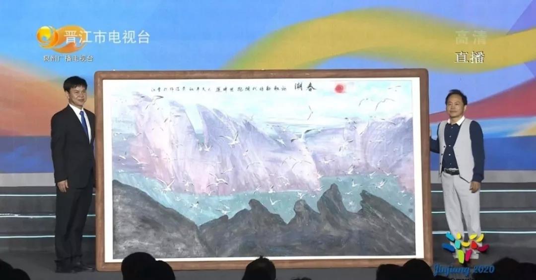 2019年10月19日,第18届世界中学生运动会倒计时一周年晚会在晋江举行,由泉州市荣兴丝绸材料研究院院长、省“百人计划”专家、泉州第二类高层次人才陈荣浩,创作完成的丝绸画作品《春潮》,在晚会现场捐赠给晋江市政府,晋江市市长张文贤接受捐赠。作品从构思、选材到创作,历时近一年创作完成,是献给晋江世中运会的特殊礼物。