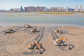 20日,记者来到晋江安海湾,看到滩涂上的互花米草大多有1.5米高,随着挖掘机“巨手”挖出埋入,一丛丛互花米草渐渐“不见踪影”。