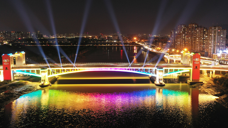 夜幕之下,田安大桥新增的璀璨灯光夜景绚丽夺目。