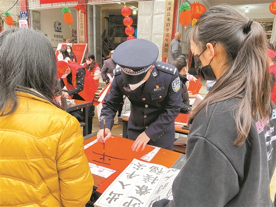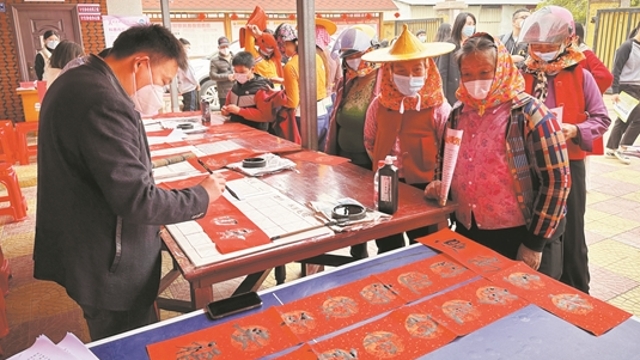 近日,安溪县龙涓乡在乡老年人协会组织开展“义赠春联送祝福 禁毒反诈保平安”活动。10多名书法爱好者为群众义务书写春联,为即将到来的春节增添了浓浓的年味。