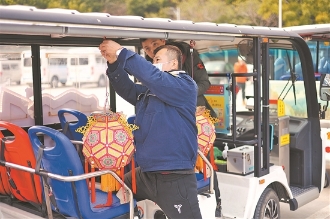 昨日,有细心的市民发现,古城街头的部分社区巴士“小白”,陆续挂上了富有泉州特色的传统花灯,车身上也贴有泉州22个世遗点的卡通图案。“小白”所到之处,引来不少市民拍照留念。