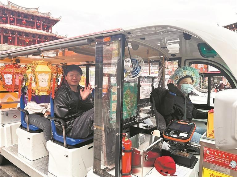新春佳节到来,巡游泉州古城街头的“小白”引人注目,簪花的女司机、摇曳的花灯、闪亮的灯带,喜庆的打扮吸引不少市民游客争相体验、拍照打卡。