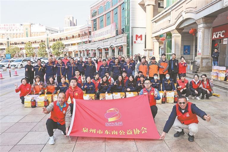 1月24日,“暖冬行动”慰问环卫工人志愿服务活动在泉州商城志愿服务驿站举行。爱心单位、爱心人士给50名环卫工人送上米、油、面包等新春大礼包和新年祝福,向坚守岗位的“城市美容师”们表达诚挚的敬意和关怀。