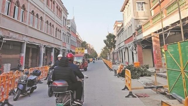 昨日上午,记者来到中山南路与新门街交叉路口不远处,施工人员正忙着拆除骑楼外面的脚手架。