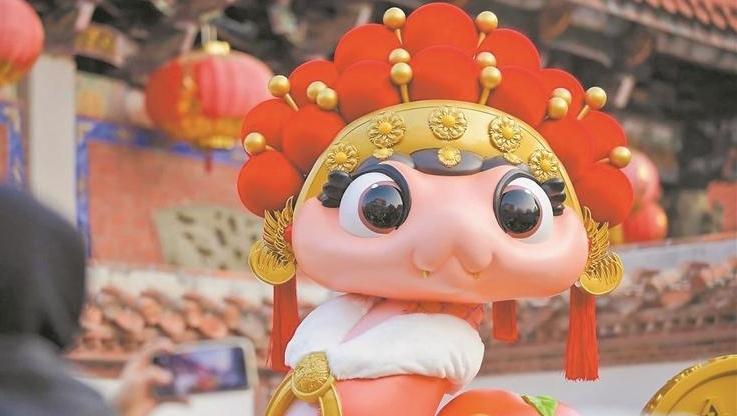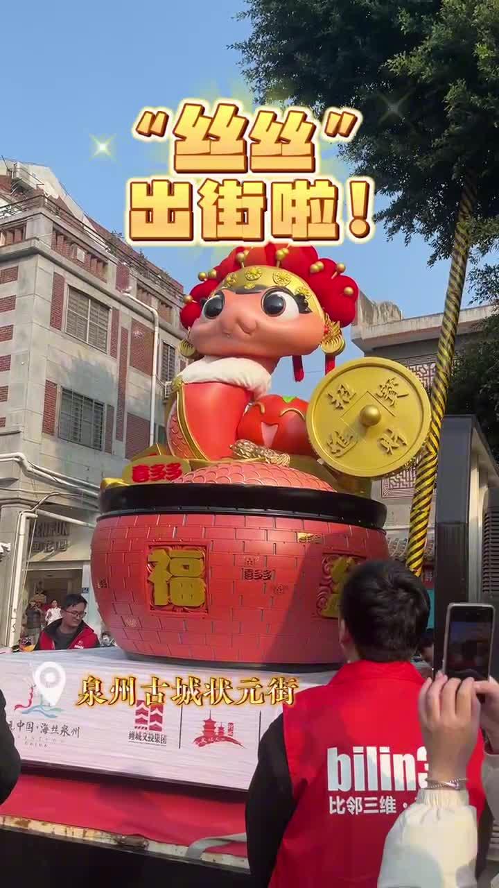来了,来了,昨日下午,泉州蛇年生肖IP“七彩刺桐蛇”艺术装置的老二“丝丝”头戴粉色绒球冠,身着华服,尾顶金币,亮相泉州古城状元街。其设计融入了诸多吉祥元素,等着市民前往体验发掘。