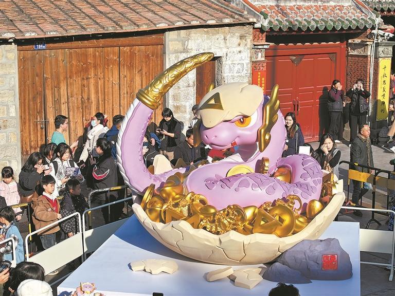 “丝丝”可爱 满满福气 “七彩刺桐蛇”第二个装置亮相状元街