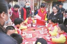 送春联拓福印 社区老幼迎新春