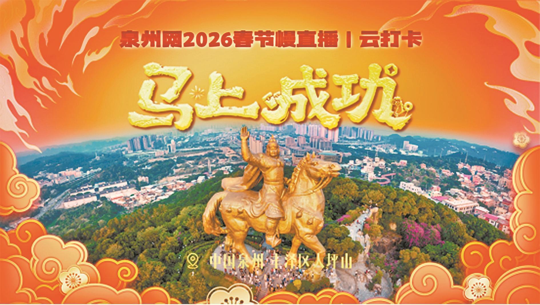 为了与全球网友共享这份昂扬向上的精气神,泉州网将在春节期间推出《“马上成功”·2026春节慢直播》特别节目。即日起,泉州网及泉州网视频号、抖音号将进行24小时不间断直播。无论你身在何处,只需打开手机或电脑,就能“云端”抵达泉州,第一时间接住这份专属马年的“成功”好运。