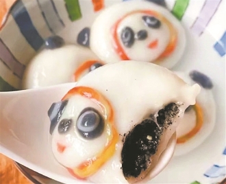 传统美食遇上冬奥会 “冰墩墩”元宵圆惹人爱
