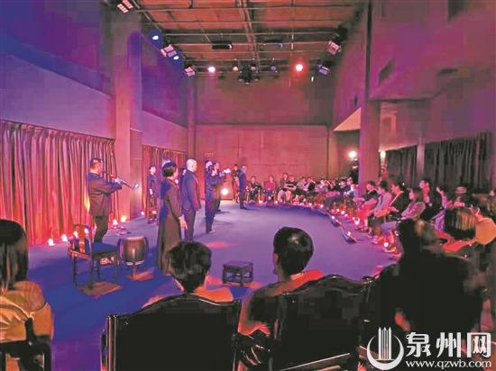 满地的烛光摇曳,影影绰绰,演员们手持蜡炬,缓歌曼舞,犹如古人秉烛夜行。23日和24日下午,梨园古典剧院“三楼有剧”点烛火上演,全新的艺术给现场观众带来一场独特的视听盛宴,让800多年历史的传统梨园戏绽放时尚之光。