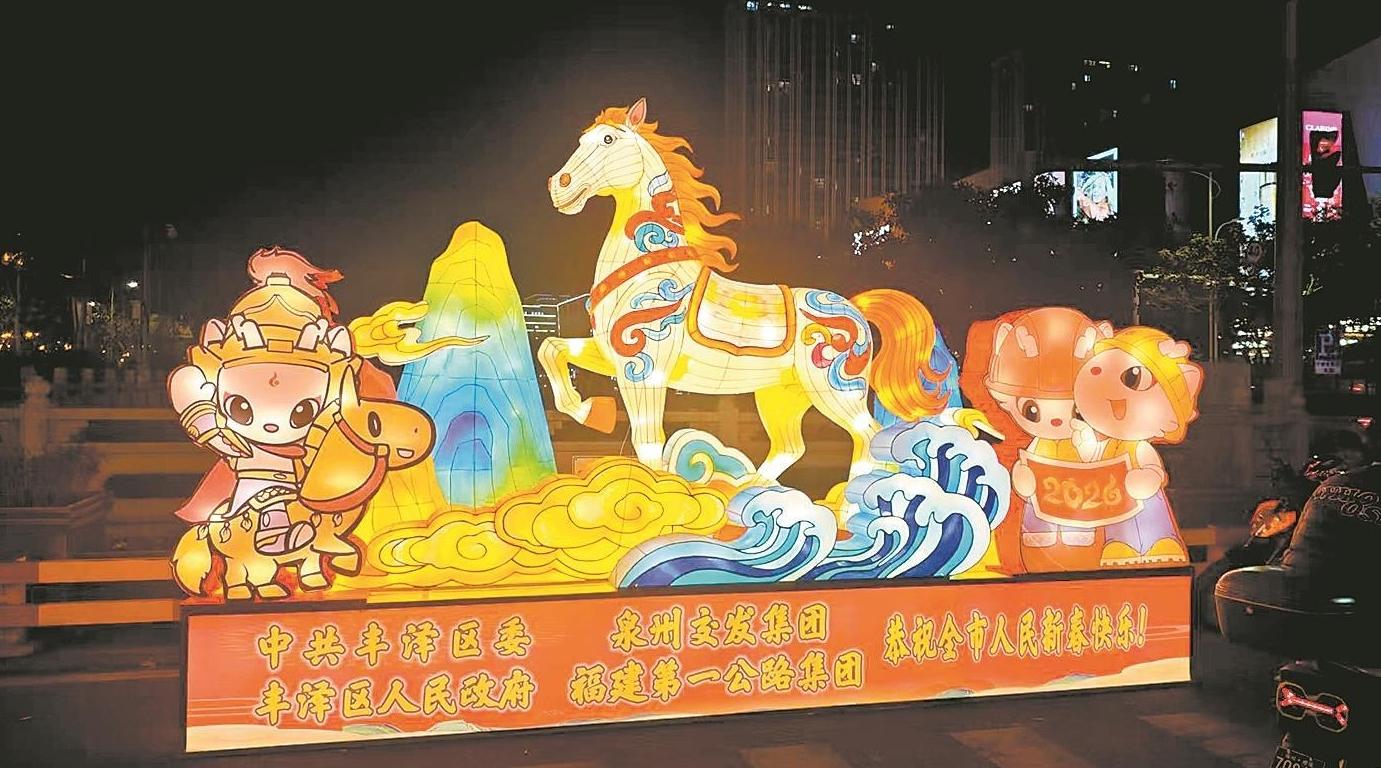 2026年泉州灯会启动 市区威远楼“龙马精神”创意花灯点亮