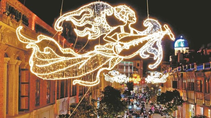元宵将至,鲤城区中山路“千灯映古城”项目已正式亮灯,精美的花灯沿两侧骑楼次第铺展,与红砖古厝交相辉映,流光溢彩间点燃浓浓年味,吸引众多游客前来观赏打卡。