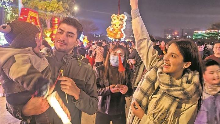 外国游客乐赏灯会 赞叹花灯“太神奇”