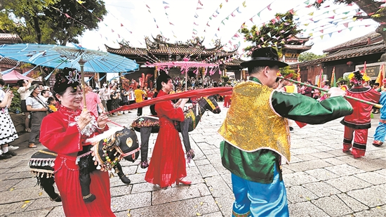 18日,城南“嗦啰嗹”民俗活动在鲤城区后山宫热闹开启。
