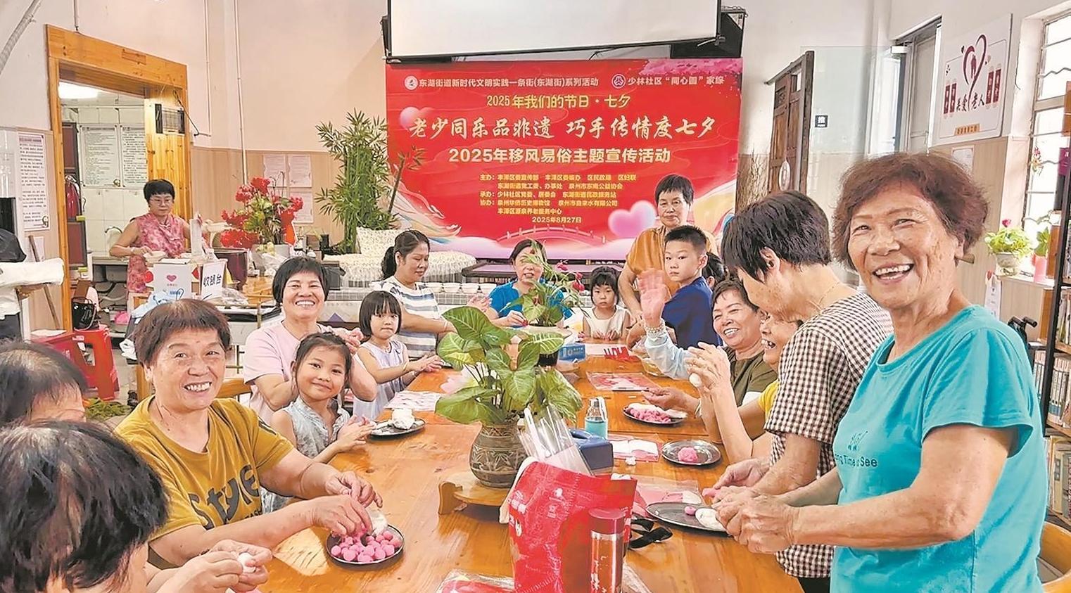 七夕佳节,从畲族土楼的民族风情体验,到永春县的中式集体婚礼,再到非遗剪纸的艺术传承,泉州各地举办了一系列融合传统民俗与现代新风尚的精彩活动,用多元化的方式诠释“我们的节日”丰富的内涵,与市民共享浪漫七夕。
