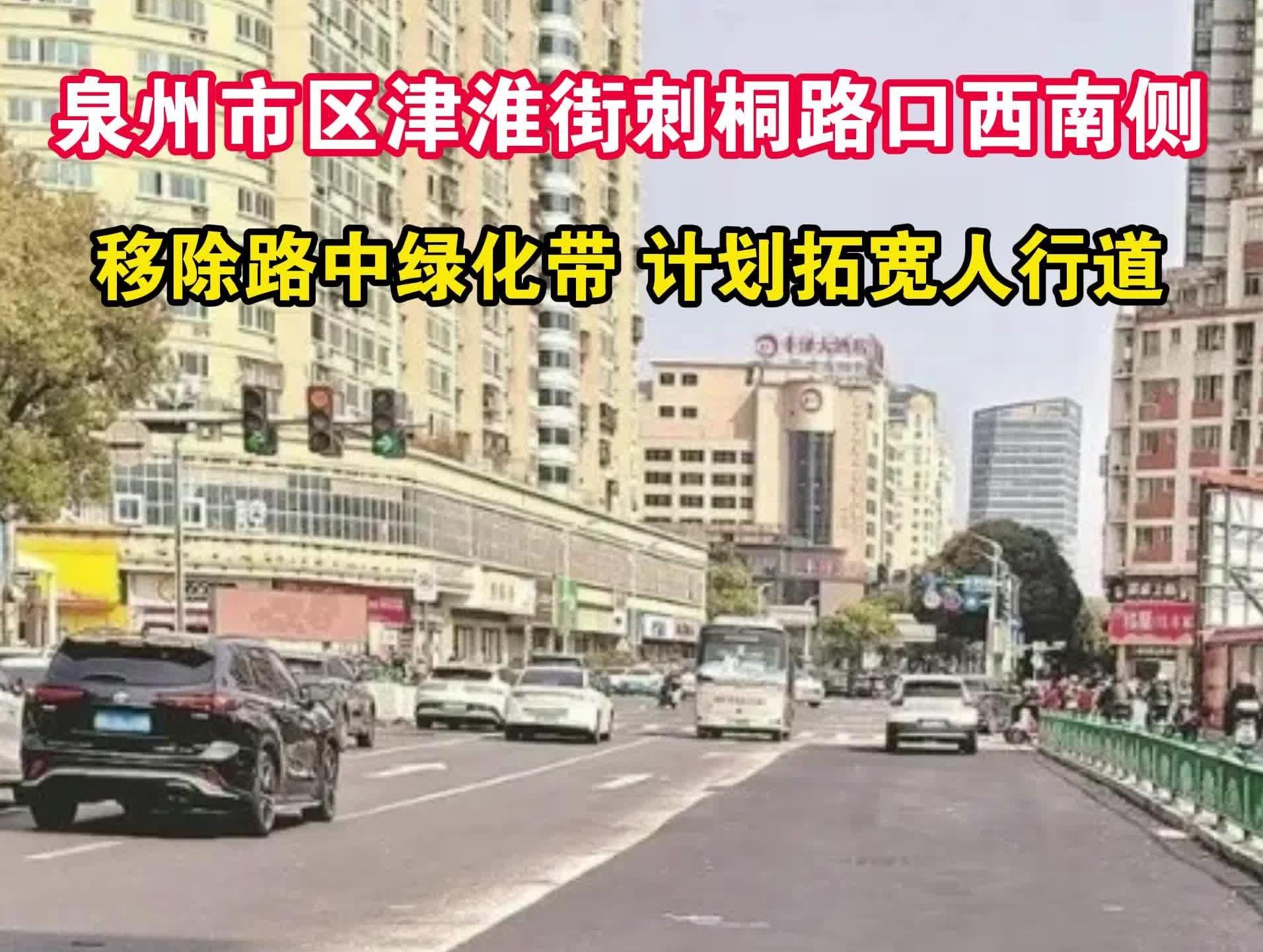 泉州市区津淮街刺桐路口西南侧:移除路中绿化带,计划拓宽人行道