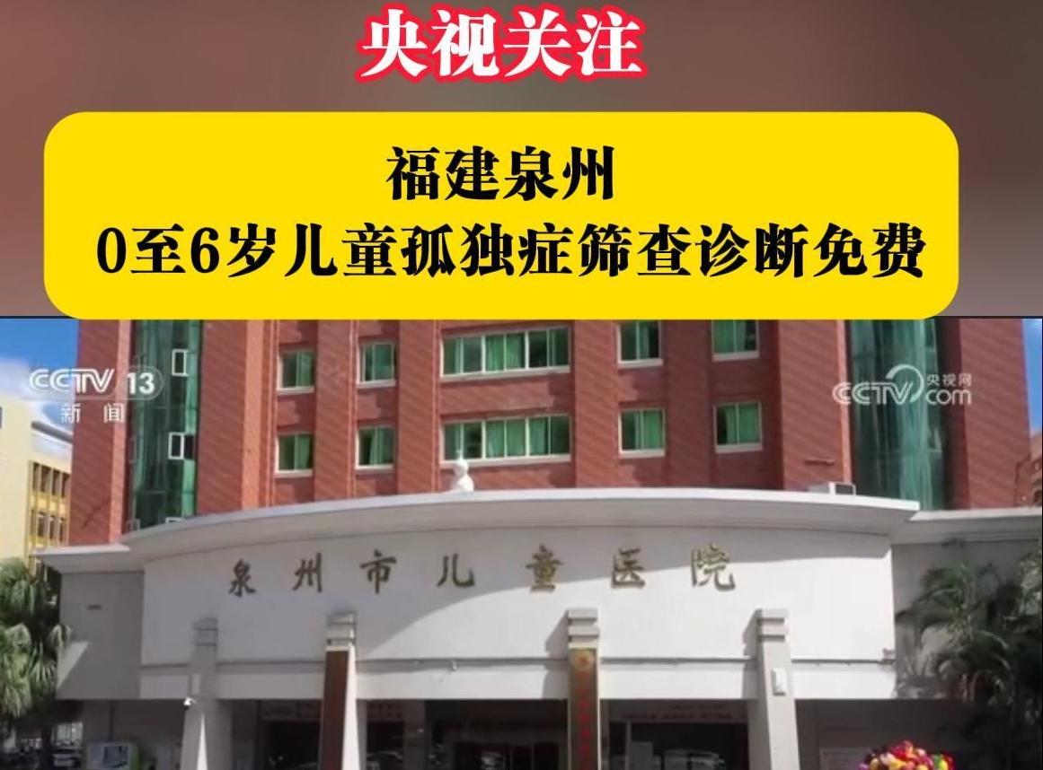 央视关注:福建泉州 0至6岁儿童孤独症筛查诊断免费