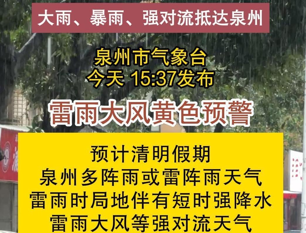 泉州市气象台今天 15:37发布雷雨大风黄色预警