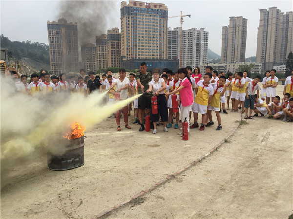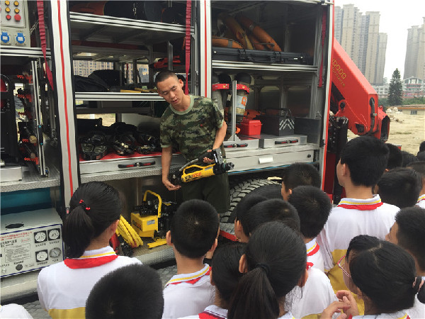 活动过程中,大队宣讲员采用理论结合实际的方法,从“防火”、“灭火”、“逃生”、“自救”等四个方面,用通俗易懂的语言向全体师生讲解如何预防校园火灾、如何查找火灾隐患、发生火灾时如何正确报警、火场如何逃生自救、日常生活中如何安全用火、用电、用气等基础消防知识。随后,消防官兵还实际演示了灭火器的使用方法和操作要领,手把手地向师生们传授如何使用灭火器材扑救初期火灾,边操作边讲解,还不时传授一些操作上的小窍门,使师生们更加直观地了解和掌握了基本的消防技能,现场气氛热烈,师生们都踊跃参与。期间,消防官兵还组织师生们参观了消防车辆器材装备,孩子们不时向消防官兵询问各式器材装备的性能与用途,并争相体验。
