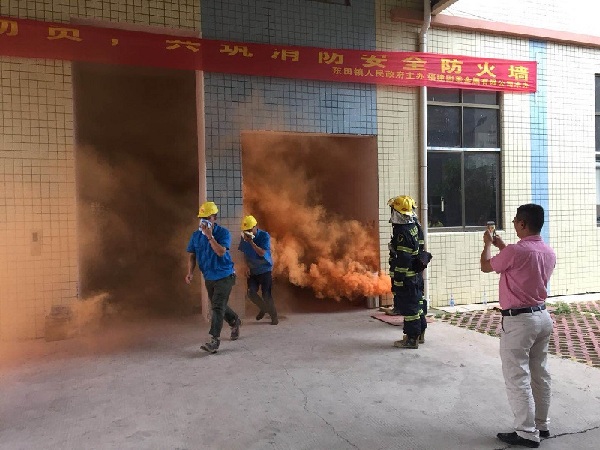 随着警铃响起,演练正式开始。在企业管理人员的引导下,员工们用湿毛巾捂住口鼻,弯着腰,冒着浓烟,按照指定路线从生产车间撤离。不一会儿,员工们已在公司空旷的广场集合完毕。随后,各部门的负责人负责清点本部门人数。此次逃生疏散演练共用时4分20秒,人员全部安全疏散。演练活动结束后,消防官兵还向大家详细讲解如何正确使用各种消防灭火器材,并指导员工们现场使用灭火器进行灭火练习。