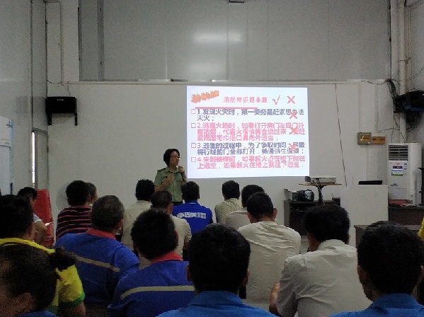 活动最后,大队消防安全宣讲员还为全体员工开展了消防知识讲座。讲座中,宣讲员以近期全国范围内发生的多起典型火灾作为案例,根据企业实际情况着重讲解了火灾特点、火灾预防对策和疏散逃生技巧等方面的消防安全知识。并针对当前夏季防控火灾形式,讲解了消防安全注意事项和安全常识,使全体员工能够确实提高消防意识。