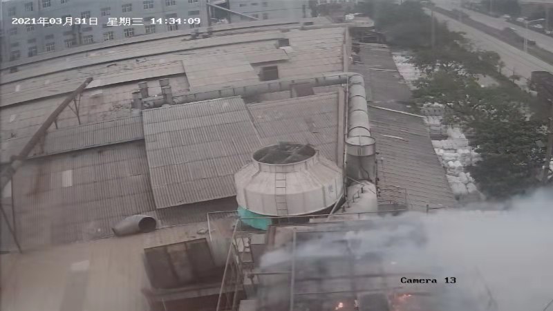 15时,消防队员到达现场,发现起火的净化器已被该厂区的自动灭火系统扑灭了。