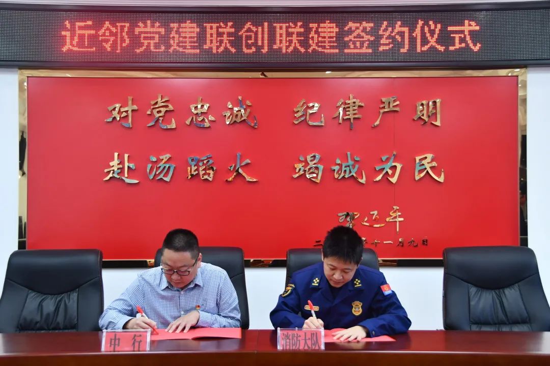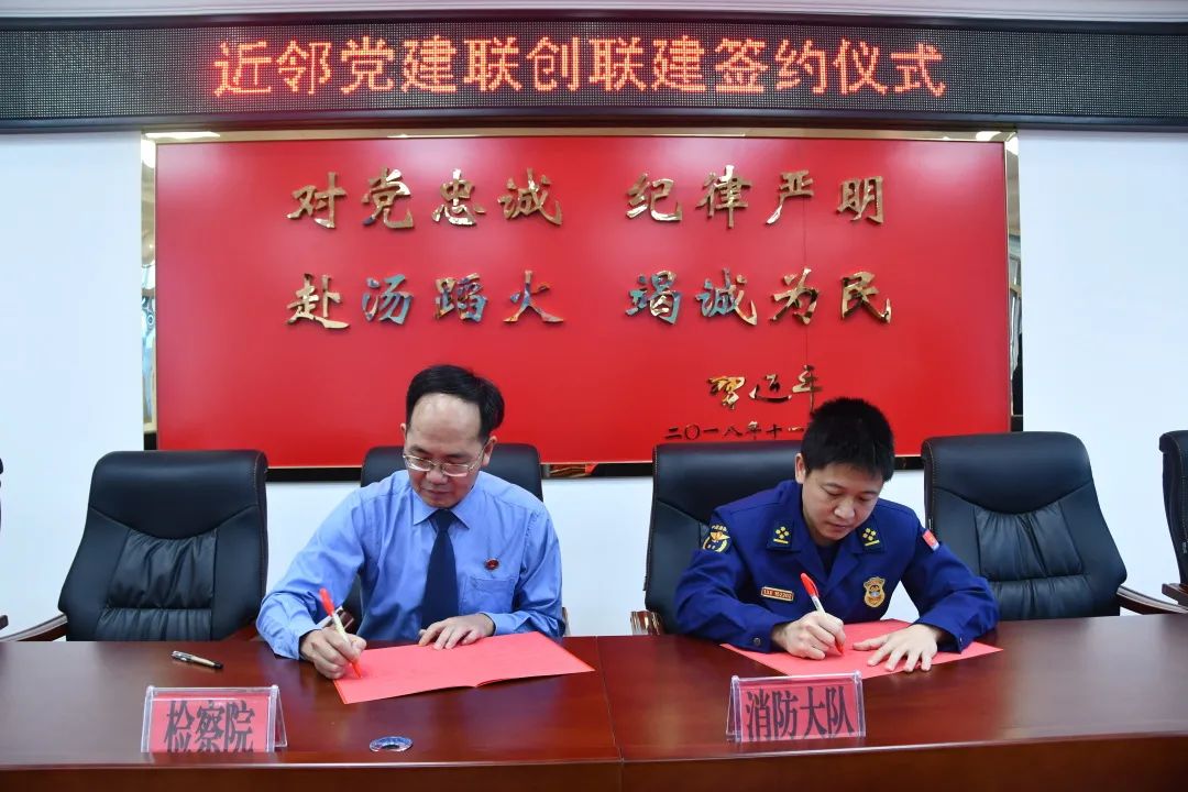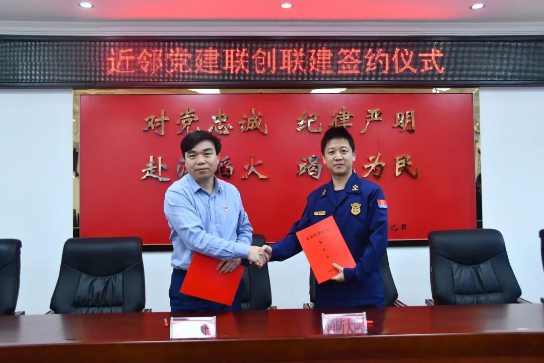 为实现党组织优势互补,在竞赛结束后,现场还举行了近邻党建联创联建签约仪式,消防大队本着“资源共享、优势互补、加强协作、共同发展”的原则,与县检察院、职业中专、农村信用社、中行永春支行等4个临近先进党组织签订了党建联创联建协议书。