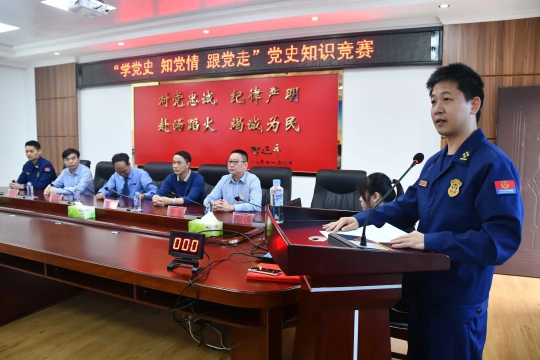 4月16日上午,在永春县消防救援大队三楼会议室,一场精彩激烈的党史知识竞赛正在进行中,比赛从一开始便呈白热化状态,5支代表队向“最强大脑”发起冲击,学习党史的热潮在这里蓬勃涌动。