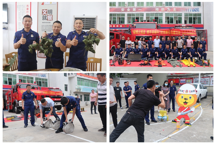 石狮大队邀请市教育局走进消防站,教职工与消防救援人员一同包粽子、茶话会、做游戏,在消防站内共同欢庆别样的端午佳节;晋江大队走进社会福利中心,带上精心准备的小礼物,送上节日祝福,用朴实而真诚的行动表达对老人们的关爱,弘扬中华民族尊老爱幼的传统美德;台商大队组织宣讲员走进沿街商店,向经营业主、员工、顾客派送端午消防“安全礼”,累计发放宣传资料300余份,协助整改火灾隐患60余处,接受群众现场咨询200余人次;安溪大队参与地方政府主办的“端午邻里亲 欢聚一堂过”旱地划龙舟比赛,最终取得团体第一名的佳绩,消防指战员们昂扬的精神面貌获得党建共建单位的一阵阵称赞;鲤城大队参加“龙腾虎跃”2022海峡两岸赛龙舟活动,在41支代表队中获得决赛第4名,并在中国龙舟拔河公开赛中获得第6名;新考录干部集训队立足实际,结合灭火救援特点自创“班组粽子操”,精心制作视频,创新形式、打造亮点。