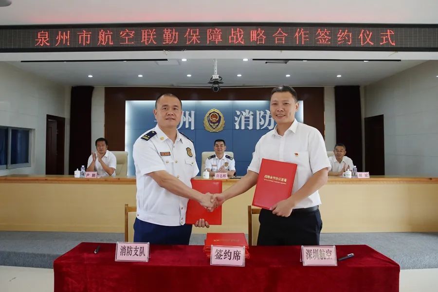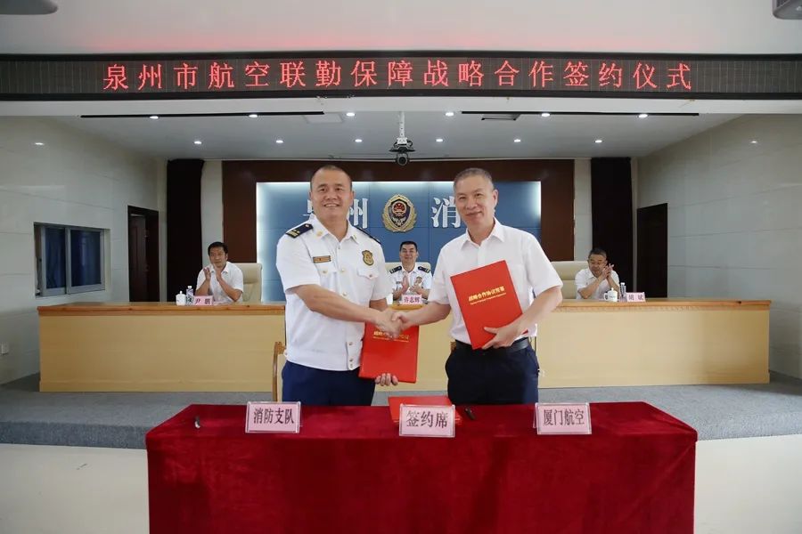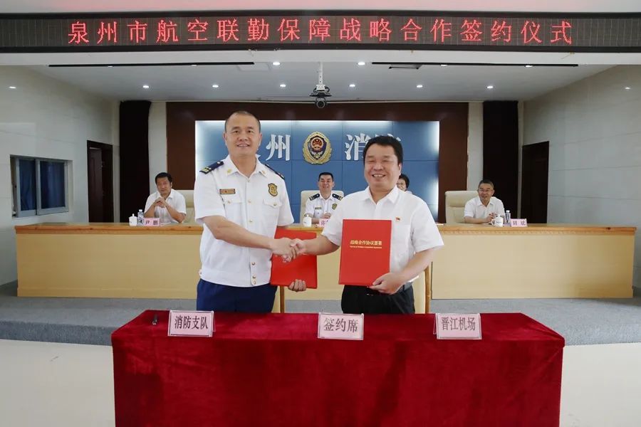为深入贯彻落实习近平总书记关于防灾减灾救灾工作的重要指示精神,充分发挥航空对应急救援力量的输送优势,提高应对重特大灾害事故能力。8月1日,泉州市消防救援支队与泉州晋江国际机场股份有限公司、厦门航空有限公司泉州分公司、深圳航空有限责任公司泉州分公司举行航空联勤保障战略合作签约仪式,支队许志辉支队长、施艺伟政委,泉州晋江国际机场股份有限公司、厦门航空有限公司泉州分公司、深圳航空有限责任公司泉州分公司主要领导出席仪式。支队分管领导、指战员代表以及机场航司干部职工代表参加仪式。 签约仪式上,朱青峰副支队长详细介绍支队战勤保障工作情况、现状,指出支队加强航空联勤保障的重要性和迫切性;晋江国际机场陈东聆书记作了致辞,介绍了晋江机场、航空系统和民航消防应急队伍发展的基本情况,并指出开展联勤保障战略是加强机场航空消防安全管理与综合应急救援能力的有益尝试,更是全面推进政企联动、促进共建共享的重要举措。希望双方坚持围绕中心、服务大局、统筹兼顾、整体推进的原则,凝聚合力、共同提升。 支队主官代表支队对晋江国际机场、厦航泉州分公司、深航泉州分公司的大力支持表示衷心的感谢,希望双方能加强交流合作,进一步完善消地战勤保障联勤联动体系,建立平等合作、效益共赢的联勤保障模式。就进一步深化交流合作,会议指出: 加强业务联通,建立专业化支撑。 发挥双方独特专业优势,推动在信息资源共享、应急力量投送、消防技能培训、航空应急演练、应急智库建设等更深层次、更广领域加强业务联通,深化合作交流,拓展合作方式,提升合作水平,推动共建双赢、共同发展。 加强机制联动,建全职业化保障。 建立信息交流互通机制,加强民用航空领域熟悉演练和应急救援战术战法交流,战时互相契合、畅通渠道,实现力量和装备的精准投送,为应急救援的实施提供常态、专业、优质保障。 加强组织联建,建实正规化基础。 坚持党建队建引领,增强社会联勤保障工作的责任感和使命感,实施深度共研共享,在人才培养、经验交流、课题研究等方面实现深度合作交流,以一流人才建一流队伍创一流业绩。 此次战略合作,支队与机场、航空公司必将探索出共建新格局,助力实现队伍和业务的双促进、双提升,全面提高社会化综合应急保障水平,共同为推进泉州社会经济高质量发展添砖加瓦!