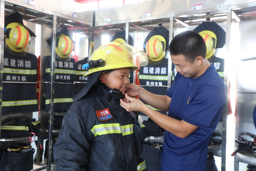 两个小朋友一直有参观消防队的心愿,得知此事后,一站立即邀请两个小朋友到队参观。消防员带他们仔细参观各种消防车辆和随车器材,用简单易懂的语言介绍了各类车辆与器材装备的使用方法、功能、用途等,并让小朋友们亲自体验穿戴消防救援人员的个人防护装备,坐上消防车,让他们真切感受到了作为“小小消防员”的使命感和责任感。看着设备先进、功能强大的消防车,孩子们大开眼界,嘴里不时地发出“哇、哇”的赞叹声,其中一个小朋友说道:“我长大了也要当一名消防员。”